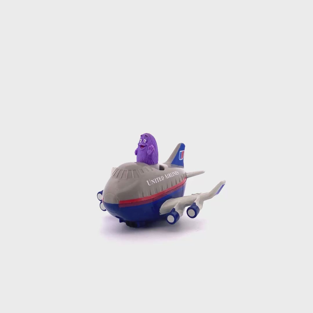 Vintage McDonald’s 1991 United Airlines Pilot Grimace in Gray Airplane